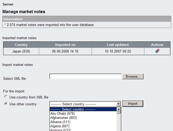 Each user which is able to maintain Market Notes will just be able to edit Market Notes. The usual User Notes interface will be re-used to edit Market Notes. Please take a look to the EPC online help for further details. Each user which has the permission to edit Market Notes is editing the notes of country where the user is assigned to.