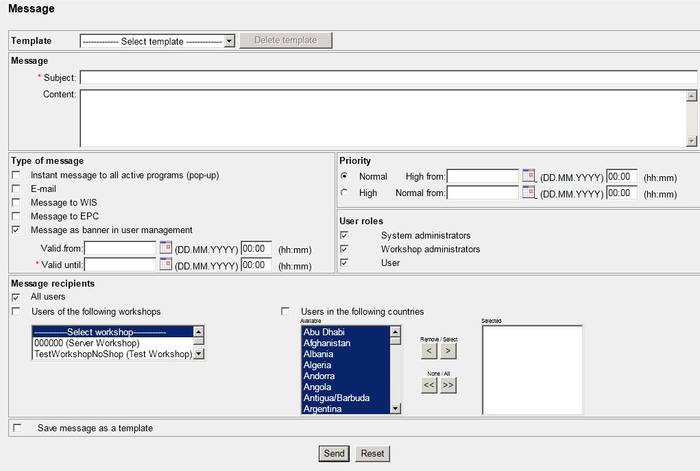 | Messaging | x | (x) | Workshop admins can send messages only to users of their own workshop | |
