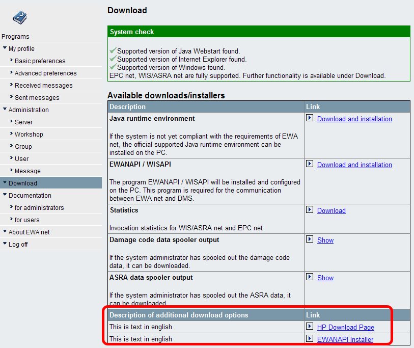 Version of Autoline 8.3 and above provide an out of the box support of EPC respectively WIS/ASRA via EWANAPI. The tradeoff is that it currently expects some files to be located in the user profile directory. If those files are not present Autoline 8.3 will not enable the EPC or WIS/ASRA buttons. The best way to install EWANAPI on user's PCs is by use of the following settings - which have to be set on the EWA server inside the file [EWA-HOME]\clientapps\ewanapi\ewanapi.ini: