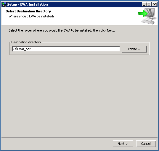 Installation location of the EWA installation. C:\EWA |