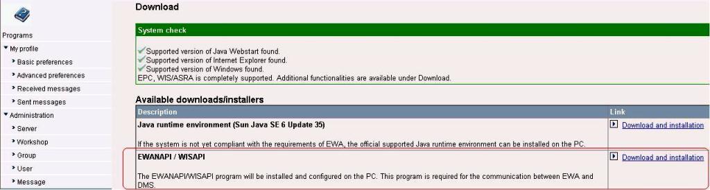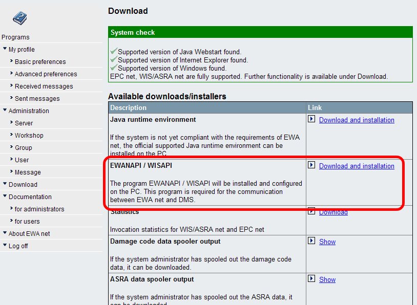 Once EWANAPI with enabled Autoline 8.2 support is installed, then any classic applications like WIS Classic and EPC FP will not work in an integrated way anymore. Leave the server side of these applications installed, but do not make use of the clients anymore. A mixed environment is not supported and may lead to confusing situations..